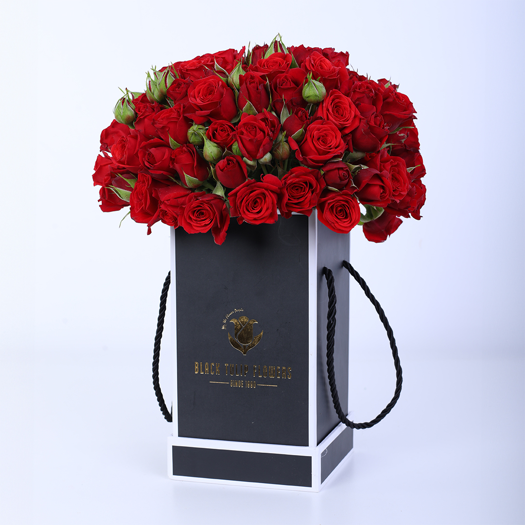 20 Red Spray Roses in Black Box
