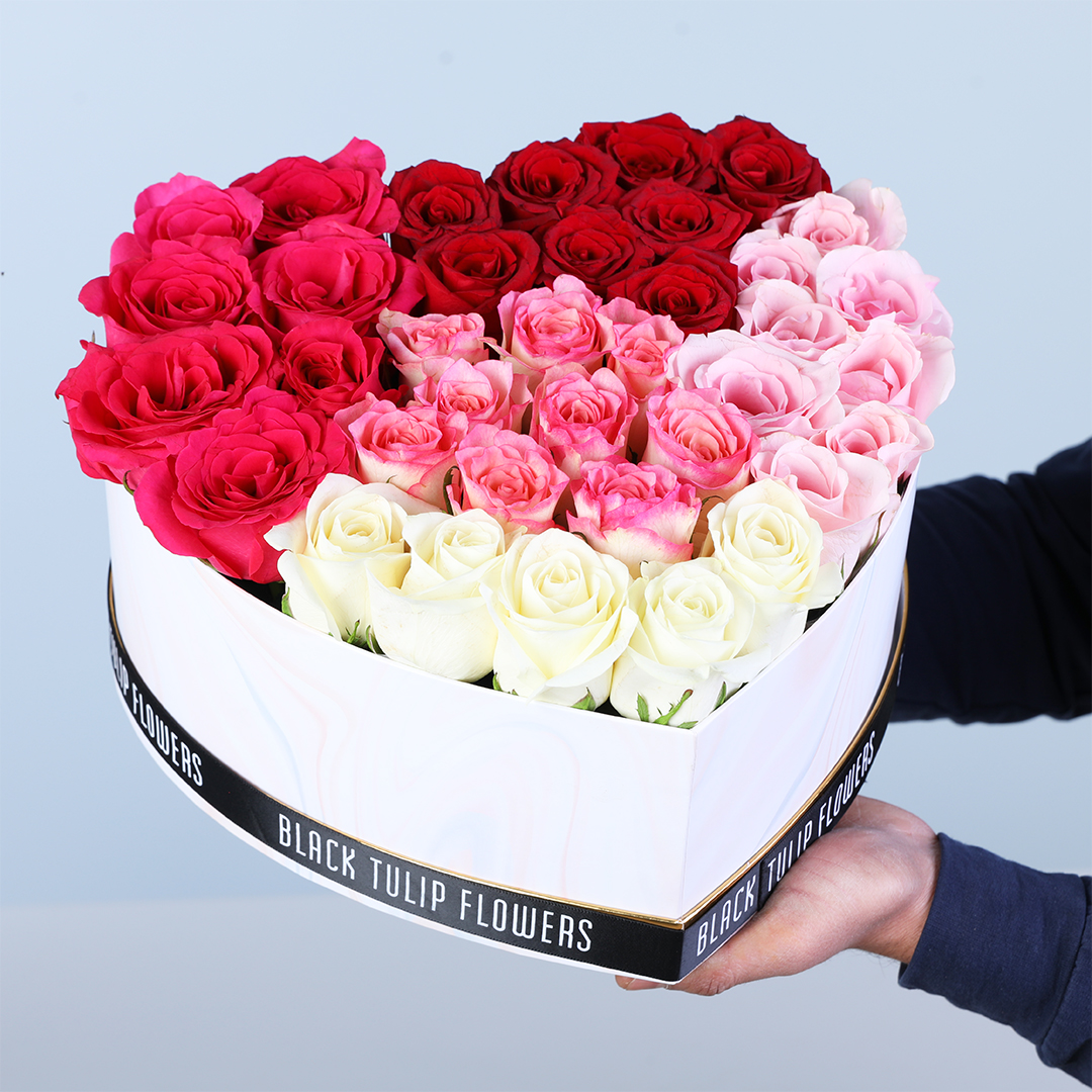Love Shades Mixed Roses Heart Box