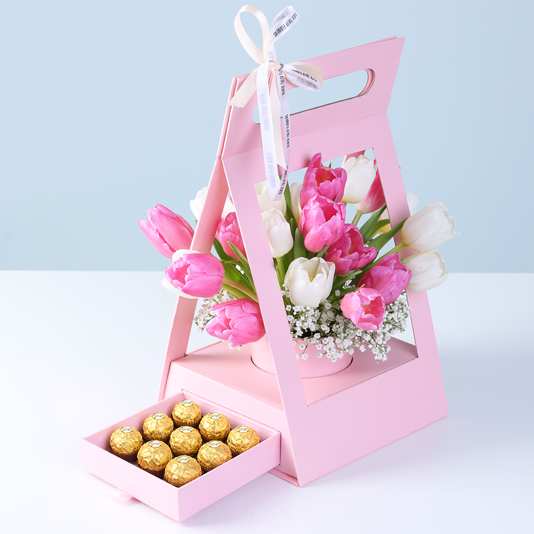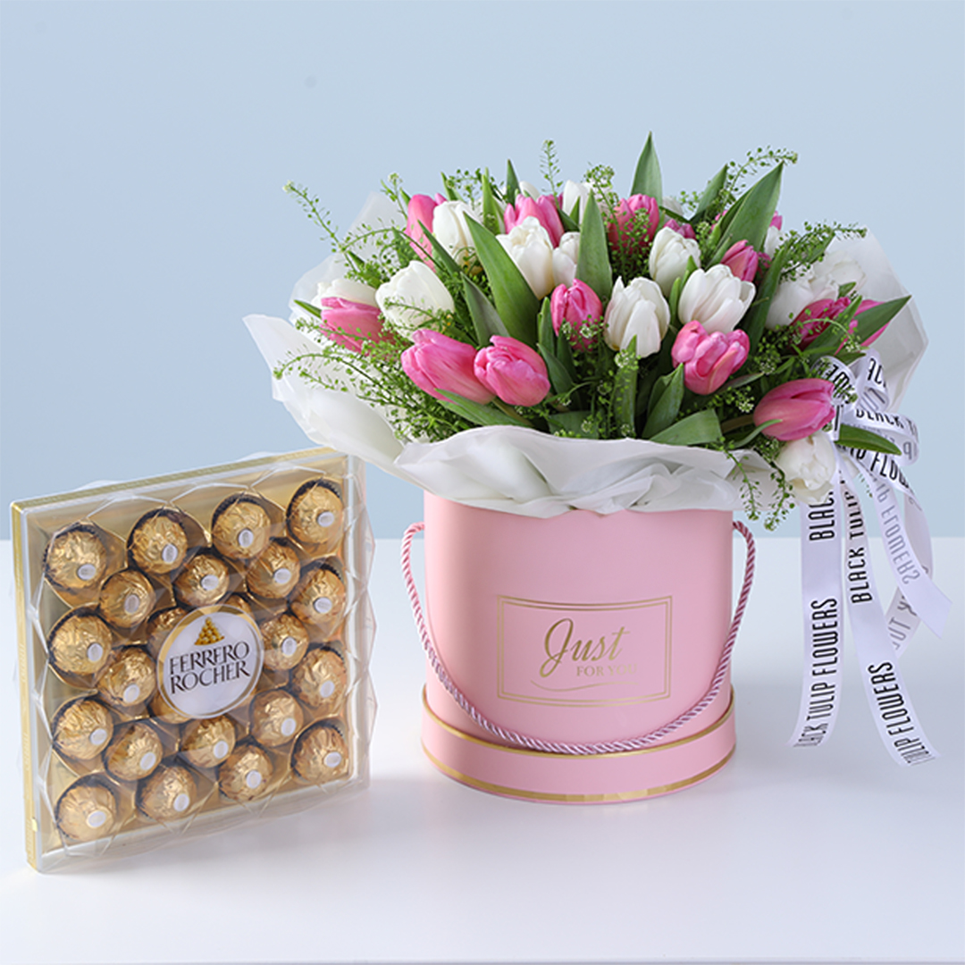 Tulips with Ferrero Rocher Combo Gift