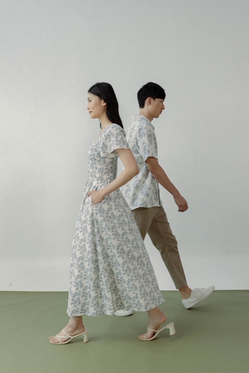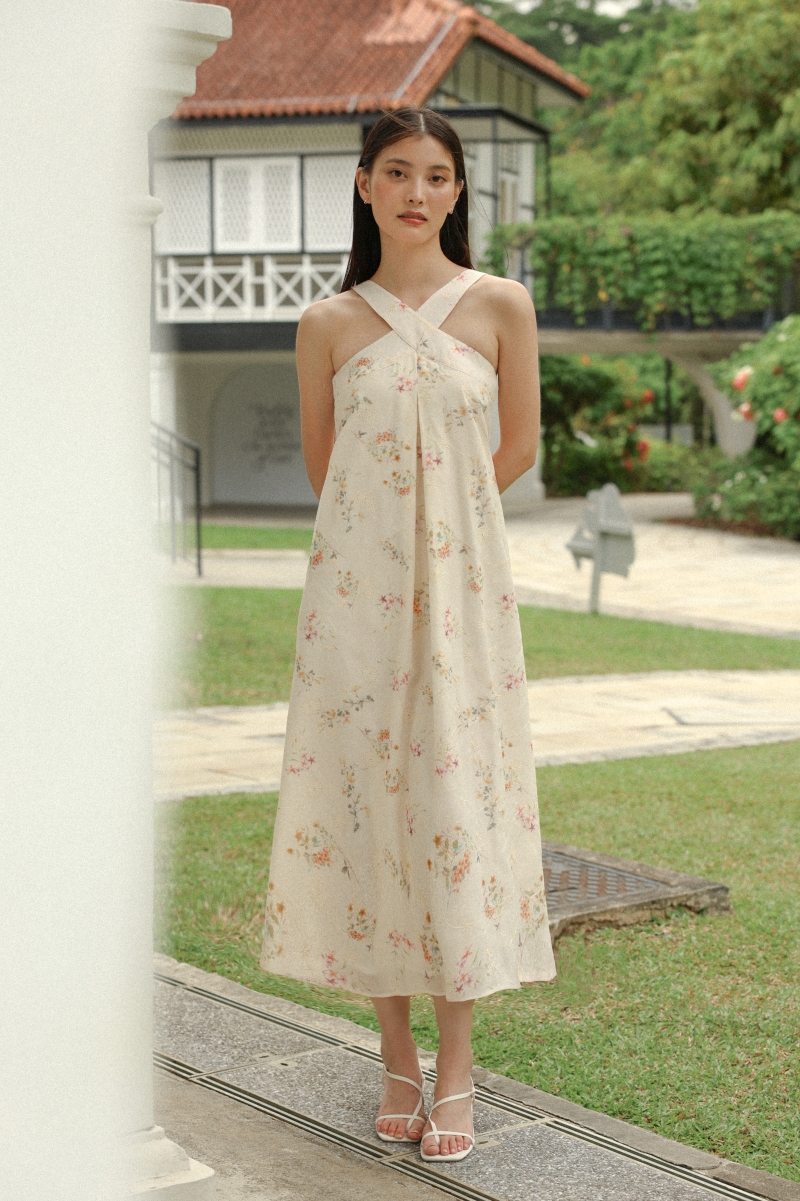 DALIYA PADDED LINEN PANELLED TWO-WAY THICK HEM MIDAXI DRESS (FLORAL)