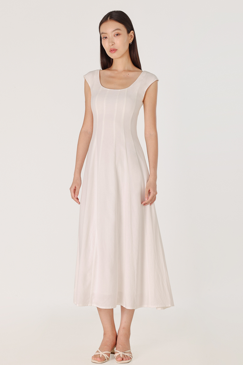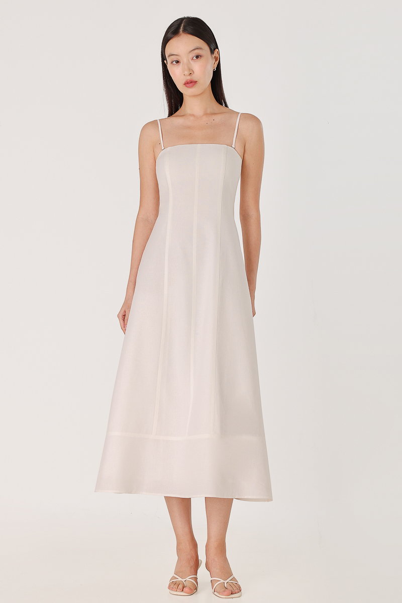 DALIYA PADDED LINEN PANELLED TWO-WAY THICK HEM MIDAXI DRESS (WHITE)