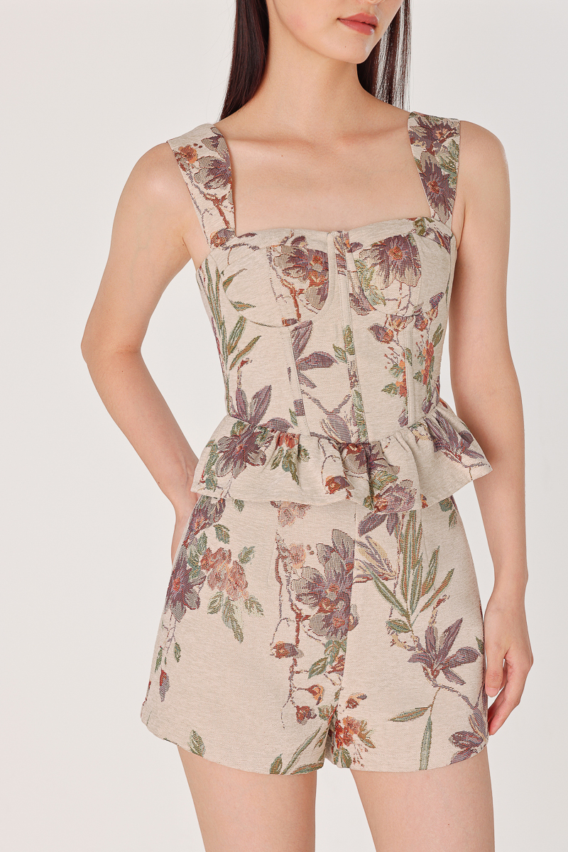 PATRINE BROCADE FLORAL SHORTS (CLAY)