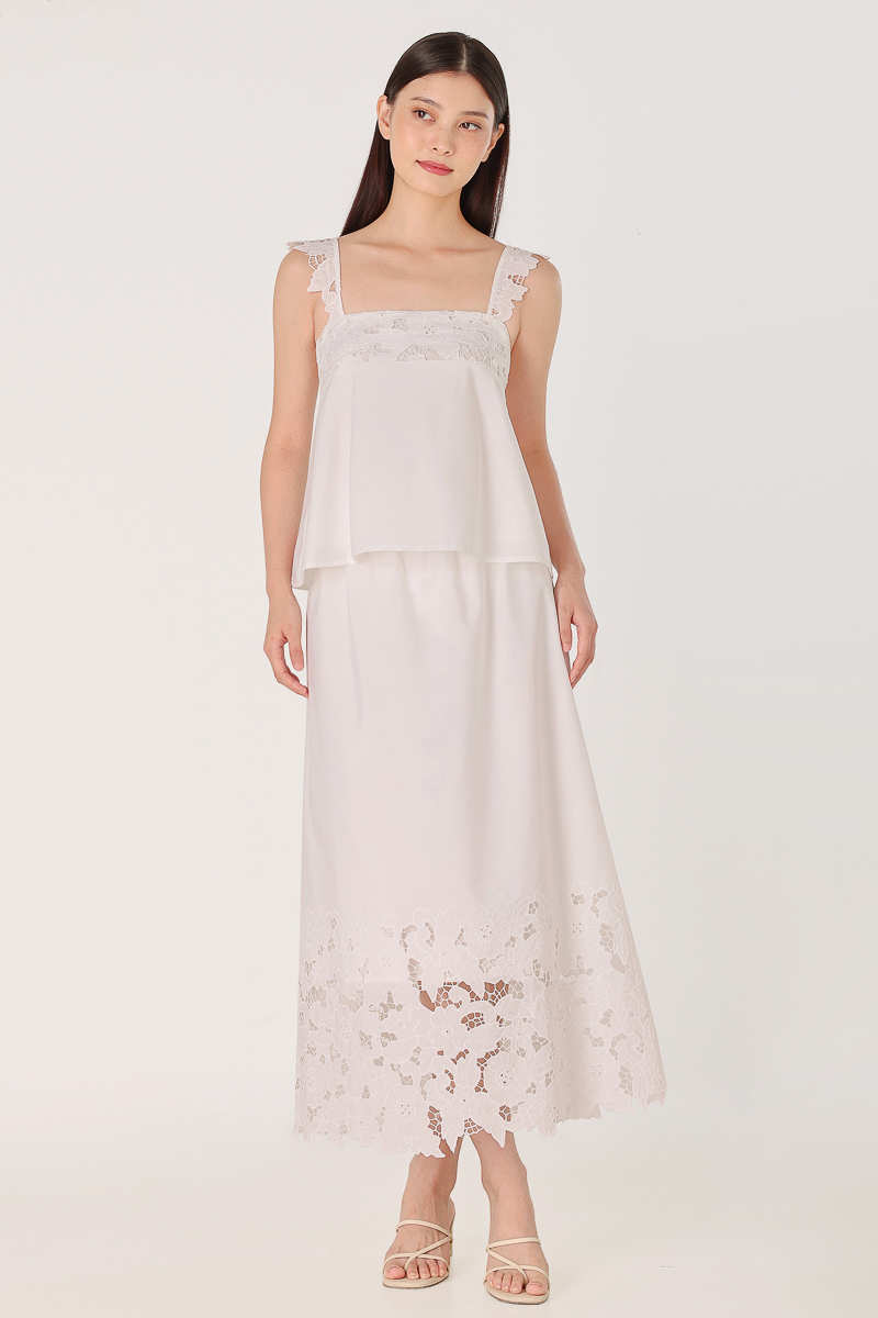 AVALINE BRODERIE EYELET FLARE MAXI SKIRT