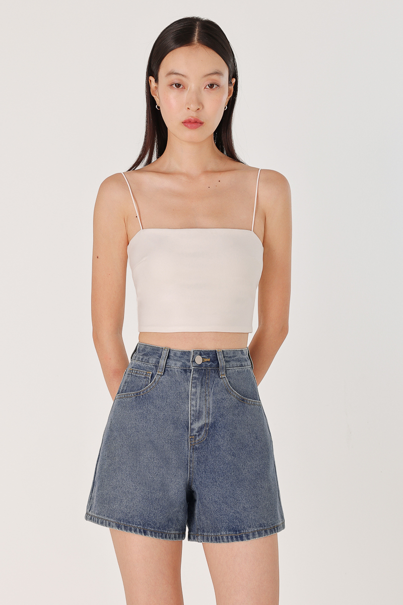 EASY GOING A-LINE DENIM MOM SHORTS (MID WASHED)