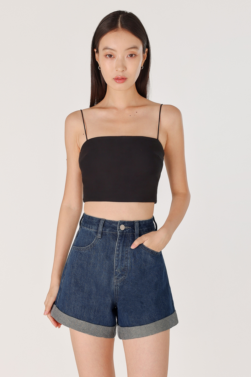BREEZY CUFFED HEM DENIM SHORTS (DARK WASHED)