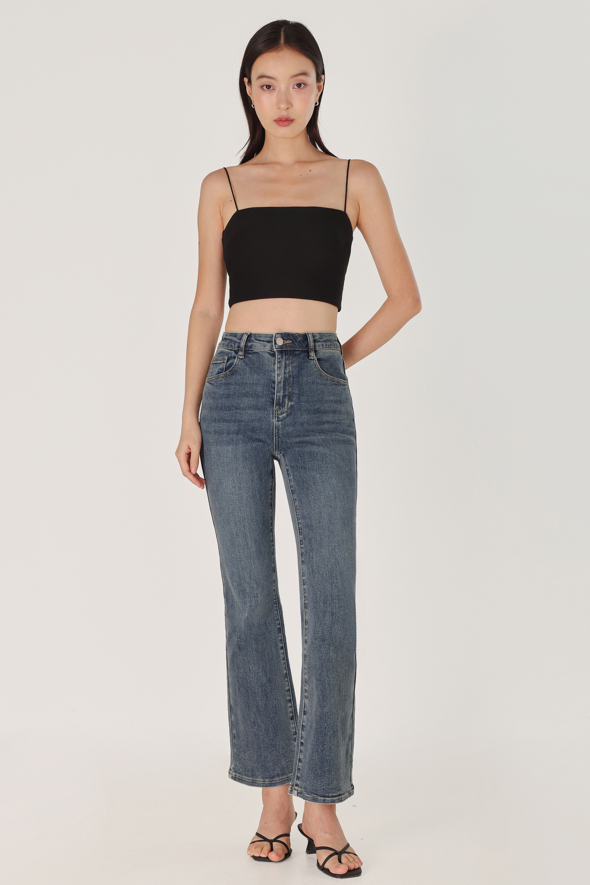 REVOLUTION SLIM FLARED DENIM JEANS - PETITE (DARK WASHED)