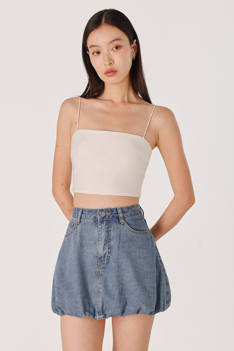 WHIRLWIND DENIM BUBBLE SKORTS (MID WASHED)