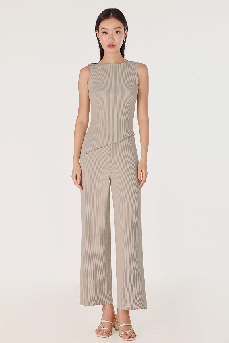 MARLOWE RIBBED LETTUCE HEM STRAIGHT LEG PANTS - REGULAR (TAUPE)